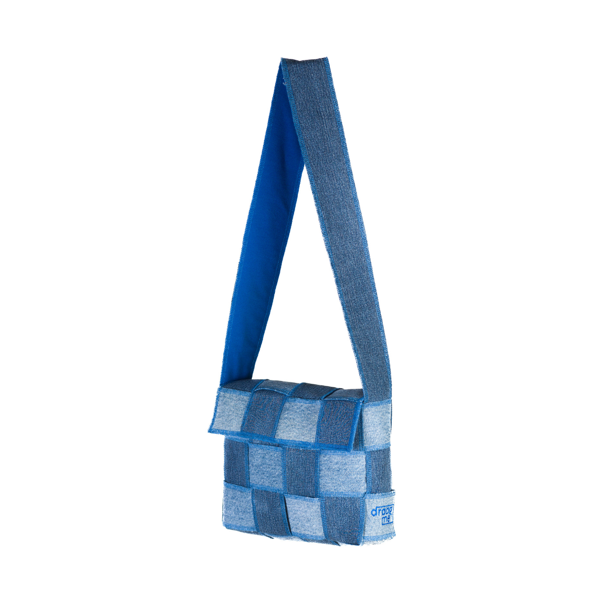 Handgemaakte handtas uit gerecycleerde jeans afgewerkt met blauw