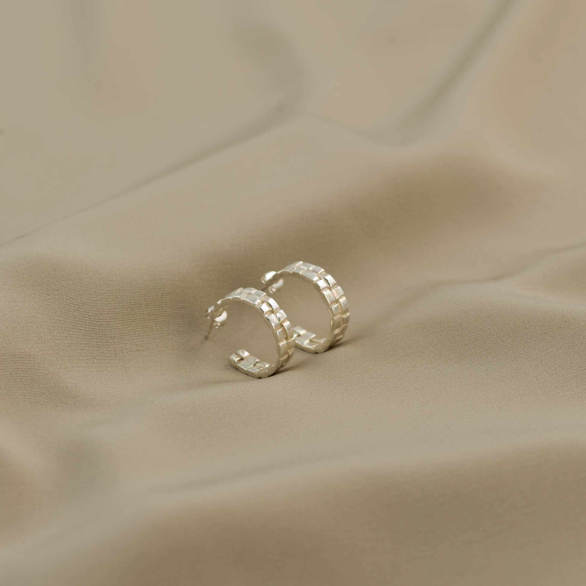 Oorringen kleine hoops (diameter 2 cm, breedte 5mm). Stekers met poussetvlinder als sluiting.